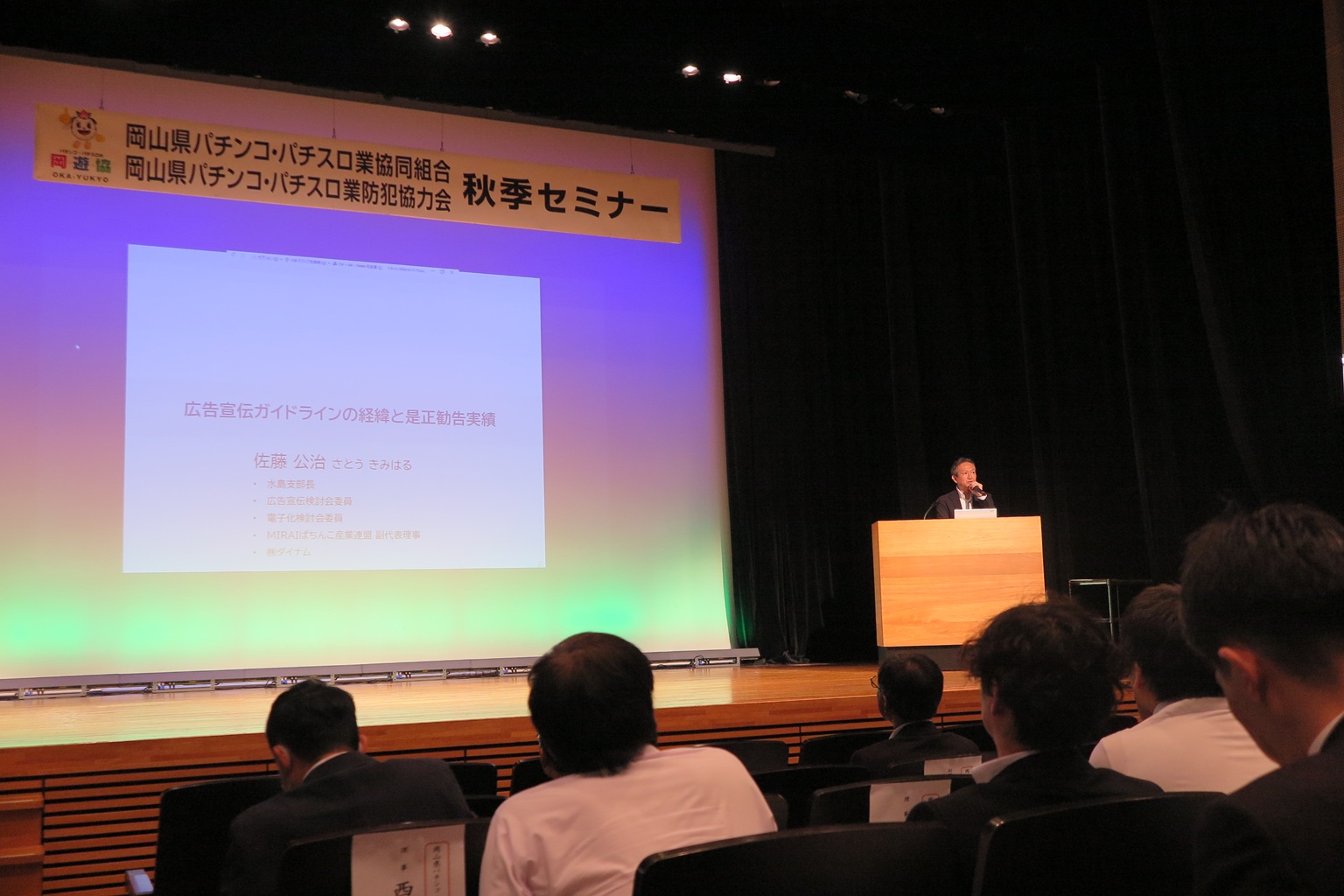 岡山県パチンコ・パチスロ業協同組合(千原行喜理事長)は10月2日、岡山市北区の山陽新聞社「さん太ホール」で、ホール経営者・店長・管理者を対象とした秋季セミナーを開催した。