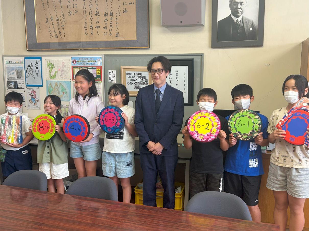 アシベスカイカンパニーは6月27日、伊東市立伊東小学校へドッジビー25個、運動会や児童会行事などで活用できる、スプーンリレーセットを6セットを寄贈した。