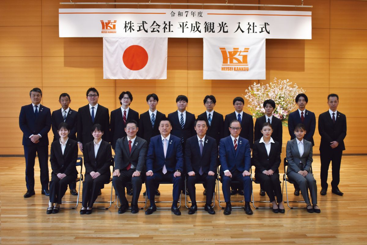 平成観光の令和7年度入社式が4月1日、多治見市のセラミックパークMINO国際会議場で行われ、新入社員10名(男性7名、女性3名)が出席した。