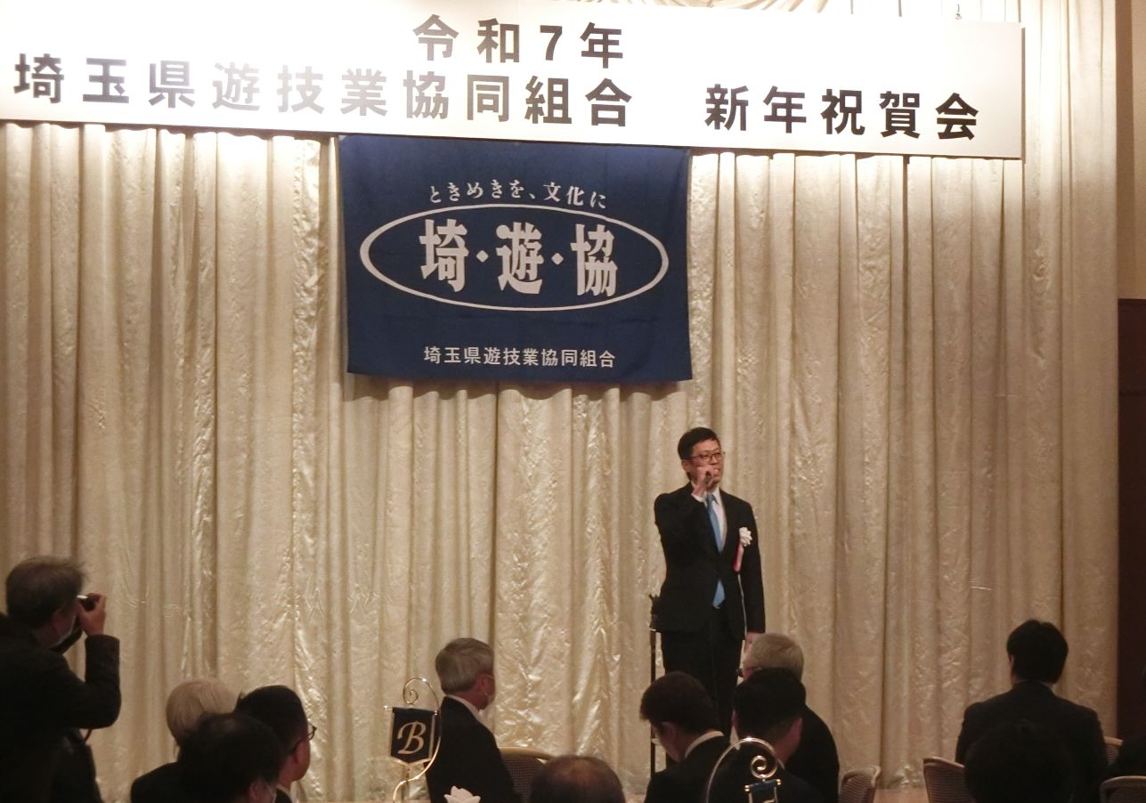 埼玉県遊技業協同組合(埼玉県遊協、趙顕洙理事長)ならびに埼玉県遊技業防犯協力会は1月31日、さいたま市のホテルブリランテ武蔵野で新年祝賀会を開催した。