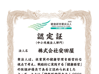 関東圏でホール21店舗を展開する安田屋は3月10日、「健康経営優良法人」として3度目の認定を受けた。