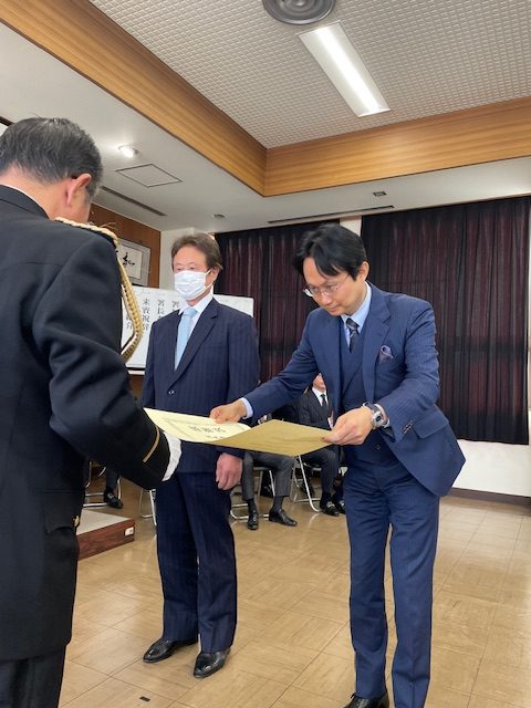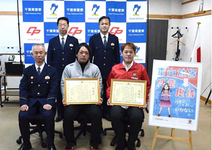 千葉県遊技業協同組合(千葉県遊協、星山聖達理事長)の組合員ホール「MGM芝店」の従業員、浅田良太さんが1月20日、子どもの事故未然防止で山武警察署長から感謝状を受贈した。
