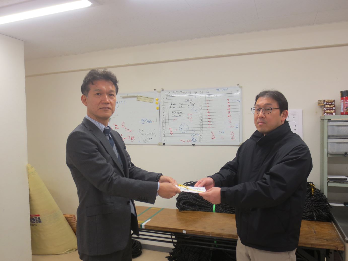 大分県遊技業協同組合(大分県遊協、岩田憲行理事長)は1月9日、大分県宇佐市の就労支援B型事業所「えがお」に労務対価15万円の支払いを行った。