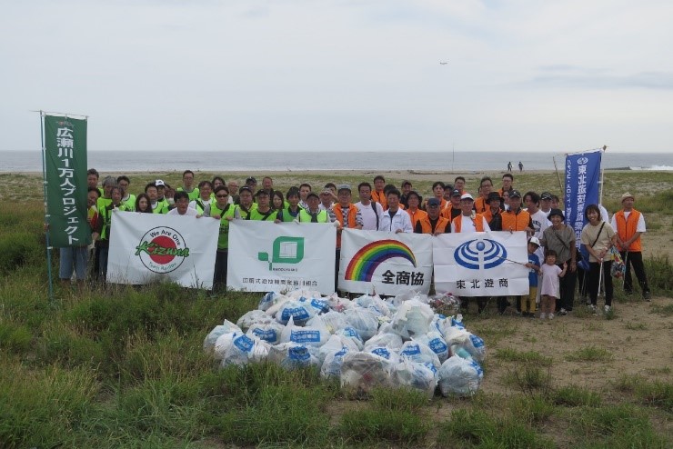 全商協所属の東北遊技機商業協同組合と回胴式遊技機商業協同組合東北支部は9月28日、宮城県名取市の閖上海岸で開催された「広瀬川1万人プロジェクト」に参加した。