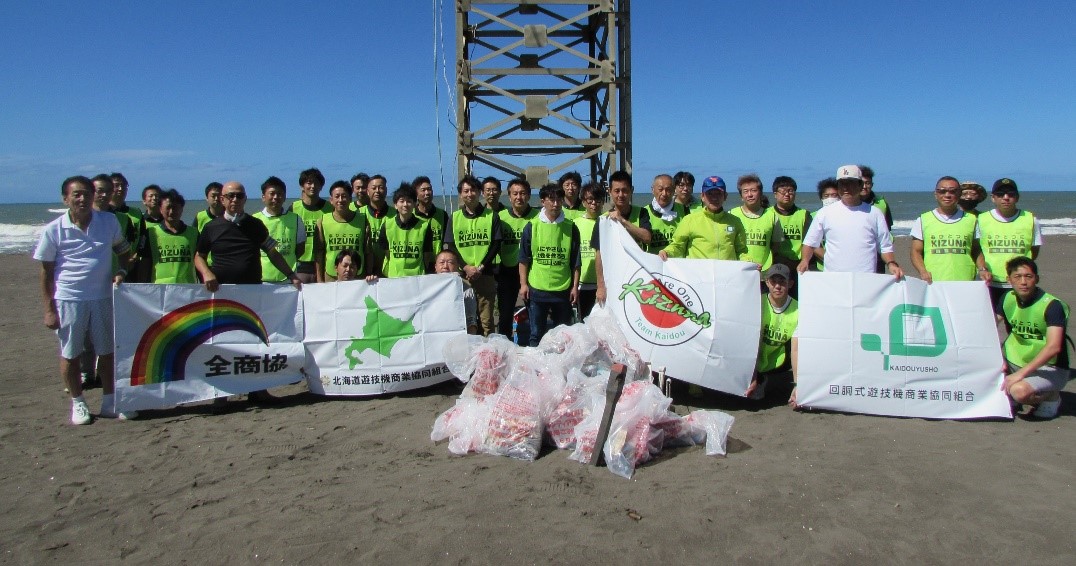 回胴式遊技機商業協同組合北海道支部(回胴遊商 北海道支部、中瀬祐詞支部長)は9月6日、北海道石狩市の海水浴場「あそびーち石狩」で、1社から3名までと参加者制限を設けながら環境保全を目的とした清掃活動を実施した。