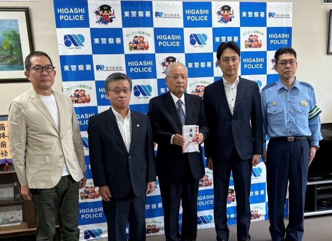 愛知、岐阜で店舗展開する真城ホールディングス(愛知県名古屋市、真城貴仁代表取締役社長)は9月24日、地域社会の安全対策を強化する一環として名古屋市の東区防犯連合会に防犯カメラ2台を寄贈し、東警察署で贈呈式が開催された。