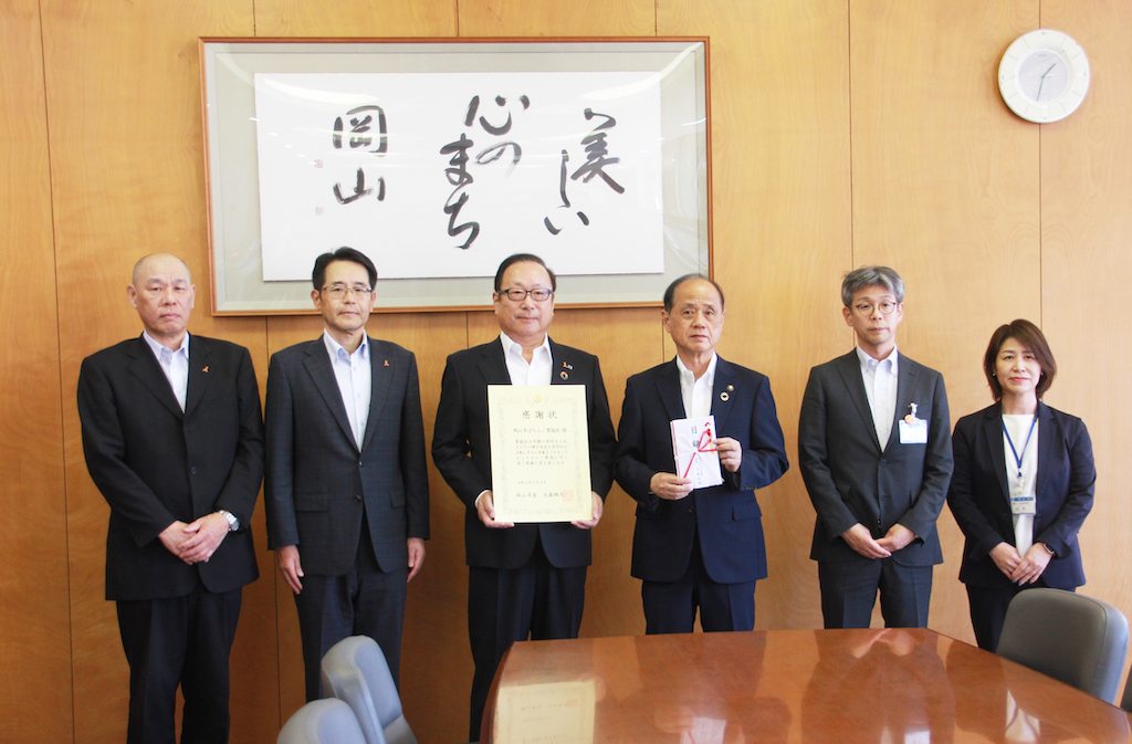この寄付金贈呈は毎年岡山市に対して行っているもので、今回は官民一体で…