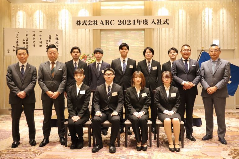 静岡を中心に山梨・長野・愛知県内に店舗を展開するABCは4月1日、静岡市内のグランディエールブケトーカイで2024年度入社式を行い、新入社員9名(男性6名、女性3名)が出席した。