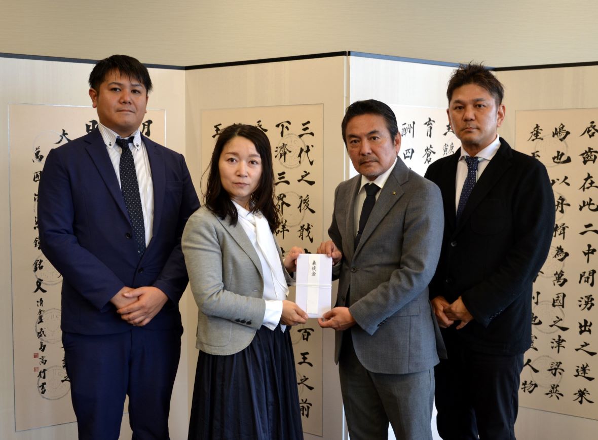 沖縄県内で遊技場15店舗を中心に、ホテル業や飲食店等を運営している「ピータイム・セブングループ」は2月28日、地元新聞社「沖縄タイムス社」を表敬訪問し、能登半島地震の義援金100万円を寄付した。