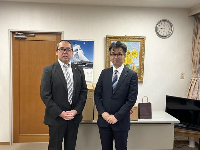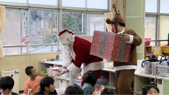 アシベ商事は12月18日、下田市稲梓小学校と白浜小学校放課後児童クラブにクリスマスケーキ30個と、来店客からのお菓子を寄贈した。