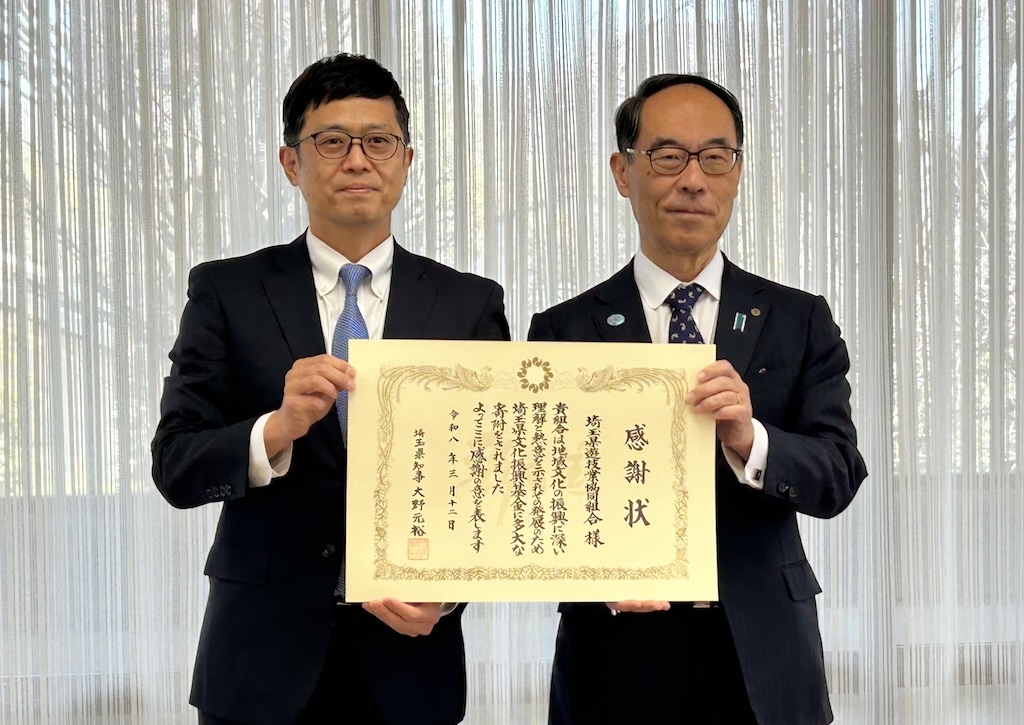 埼玉県遊協、文化振興基金で知事感謝状受領 日赤へ救護用テントも寄贈