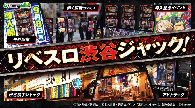 サミーは、9月8日(月)の「スマスロ 東京リベンジャーズ」導入を記念し、東京・渋谷にて各種プロモーション施策を展開する。