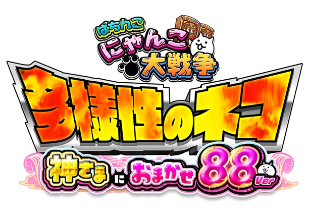 京楽産業.は「P にゃんこ大戦争 多様性のネコ 神さまにおまかせ88ver.」(型式名:Pにゃんこ大戦争~多様性のネコ~88らいとばーじょんM2、オッケー.製)を発表した。