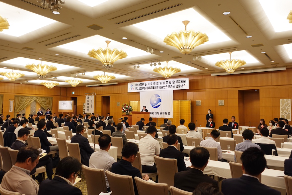 神奈川県遊技場協同組合(神奈川県遊協、伊坂重憲理事長)は6月20日、横浜市内の横浜ベイホテル東急で第59回通常総会を開催し、役員改選では新役員の選出ののち8期目となる伊坂理事長の再選を決めた。