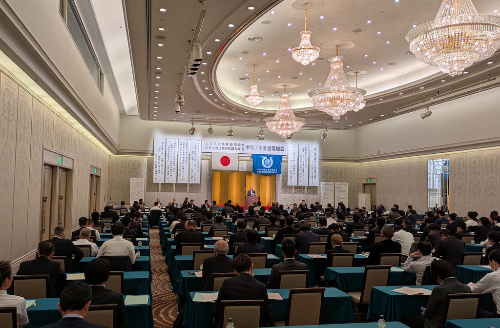 広島県遊技業協同組合(広島県遊協、延川章喜理事長)および広島県遊技業防犯協力会連合会は6月27日、広島市のリーガロイヤルホテル広島で令和7年度通常総会を開催し、役員改選では延川理事長を再任した。