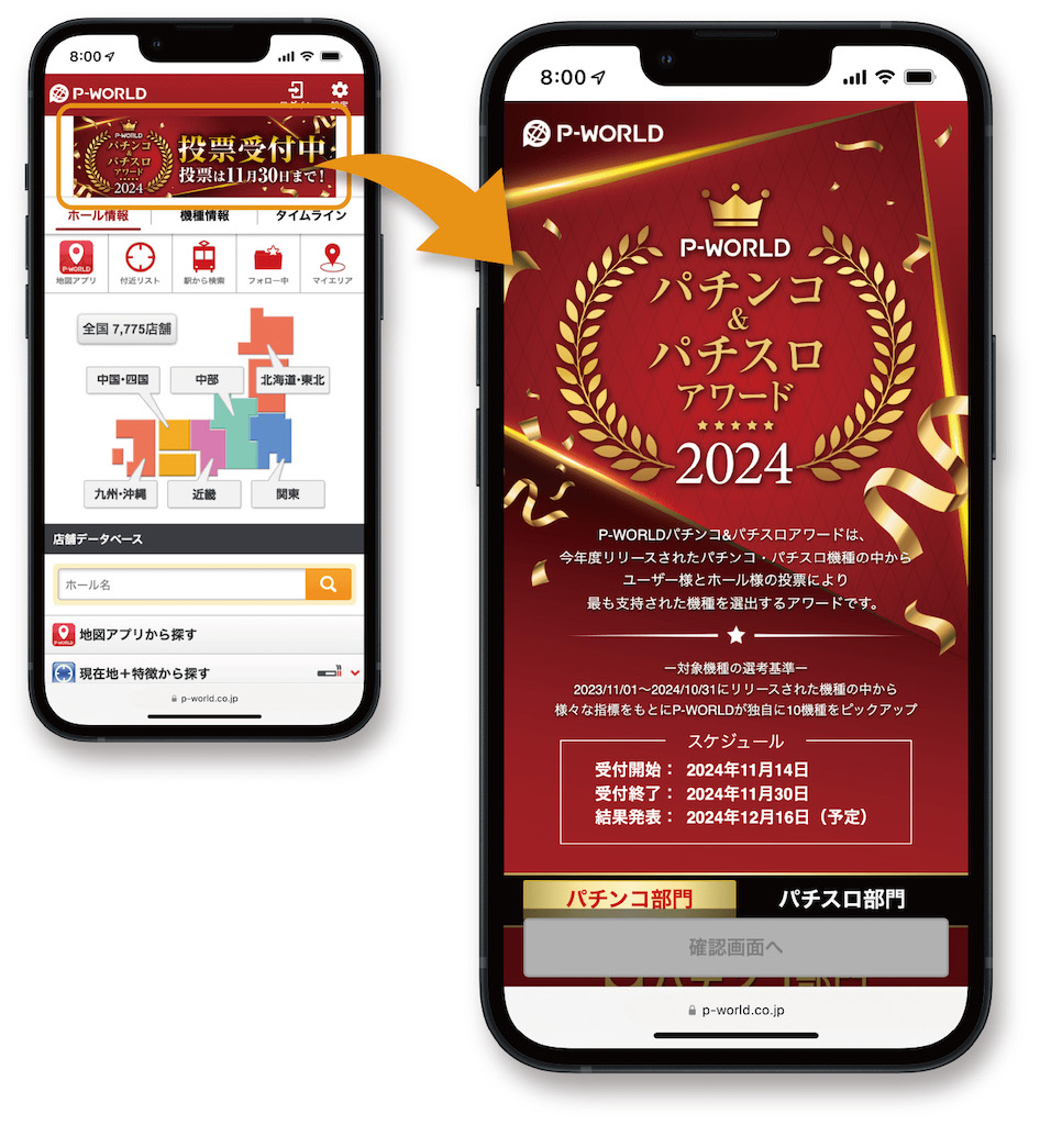 ピーワールドが実施する「P-WORLD パチンコ&パチスロアワード2024」の投票受付が11月14日からスタートした。