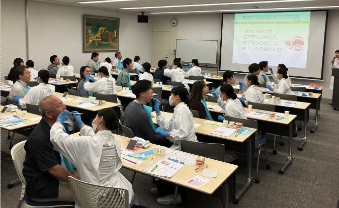 ダイコク電機は7月11日、歯科衛生士(国家資格)を養成する3年制の専門学校「ナゴノ福祉歯科医療専門学校」(名古屋市東区)からの依頼を受け、学生受入れを実施。本社ビルで歯科衛生士学生の課外授業に協力した。