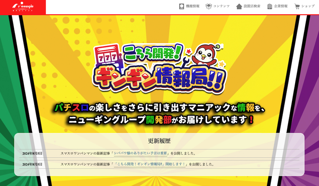 ニューギングループはこのほど、新サービス「こちら開発!ギンギン情報局‼」を開設した。