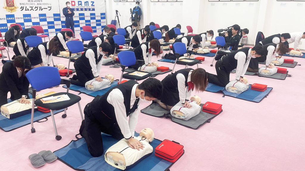 新潟県で「DAMZ(ダムズ)」19店舗を展開する第一実業(本社・新潟県新潟市、加藤淳一代表取締役社長)は毎年、CSRの一環として普通救命講習を行っており、今年も12月20日に実施した。