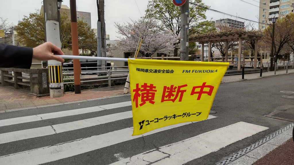 ユーコーラッキーグループ(福岡県久留米市、金海基泰代表取締役社長)は、福岡県で5月11日から20日に実施される「春の交通安全県民運動」に、横断旗30本を寄贈した。