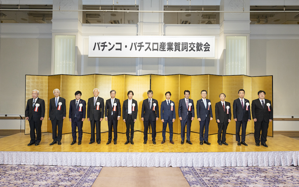 業界13団体共催によるパチンコ・パチスロ産業賀詞交歓会が1月31日、3年ぶりに東京・新橋の第一ホテル東京で開催された。