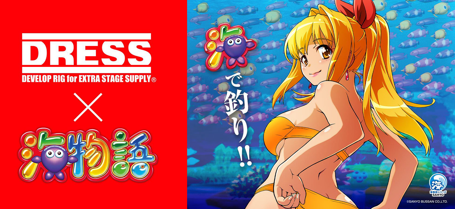 三洋販売は、有限会社ライラクスが展開する釣り具・アウトドア用品の「DRESS」ブランドとコラボレーションした「海物語」の釣り具各種の販売を7月15日から開始した。