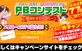 ダイナムは現在実施中の「みんなでつくる!新しいごらくパチンコPBコンテスト」の開催を記念して、1月17日から2月4日まで、Amazonギフト券やオリジナルグッズがあたるツイッターキャンペーンを開始した。 「同PBコンテ…