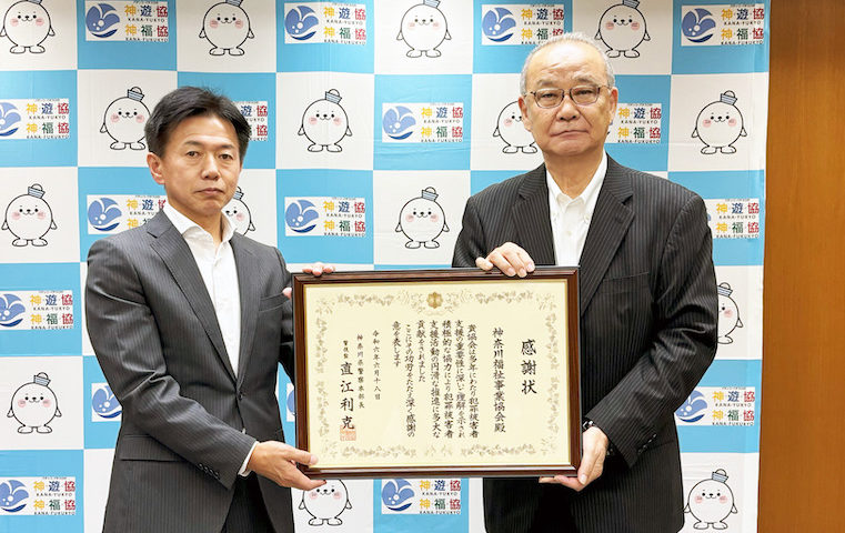 神奈川県遊技場協同組合(神遊協)と神奈川福祉事業協会(神福協)は6月18日、横浜市の組合会館で感謝状贈呈式を開催した。