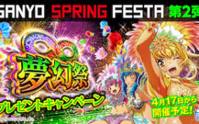 三洋物産と三洋販売は、 4月19日から「Pギンギラパラダイス 夢幻カーニバル」が全国のホールに導入されるのを記念して実施している「SANYO SPRING FESTA」の第2弾企画「夢幻祭」を4月17日から5月21日ま…