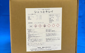 アルコール製剤「シュッとキレイ」は、消防法の危険物には該当しない非危険物で中性タイプの除菌液。成分は、エタノール55.72%、乳酸ナトリウム1%、乳酸0.01%、食品素材43.27%で、製造日を含む12カ…