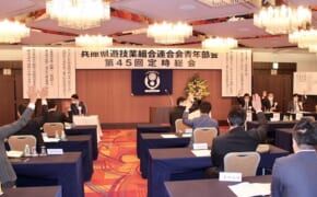 兵庫県遊連青年部会は6月25日、新型コロナウイルスの感染拡大に伴い延期されていた第45回定時総会を、神戸市内のANAクラウンプラザホテル神戸で開催し、任期満了に伴う役員改選では、米田邦広部会長の続投を承認した。米田部会…