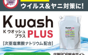 「K wash PLUS(ケーウォッシュプラス)」は、ウイルス対策に威力を発揮する優れた除菌力に加え、高い洗浄性と消臭力も兼ね備えた強アルカリ電解水。次亜塩素酸ナトリウムを配合し、物の表面に付着したウイルス除菌に効果的。…