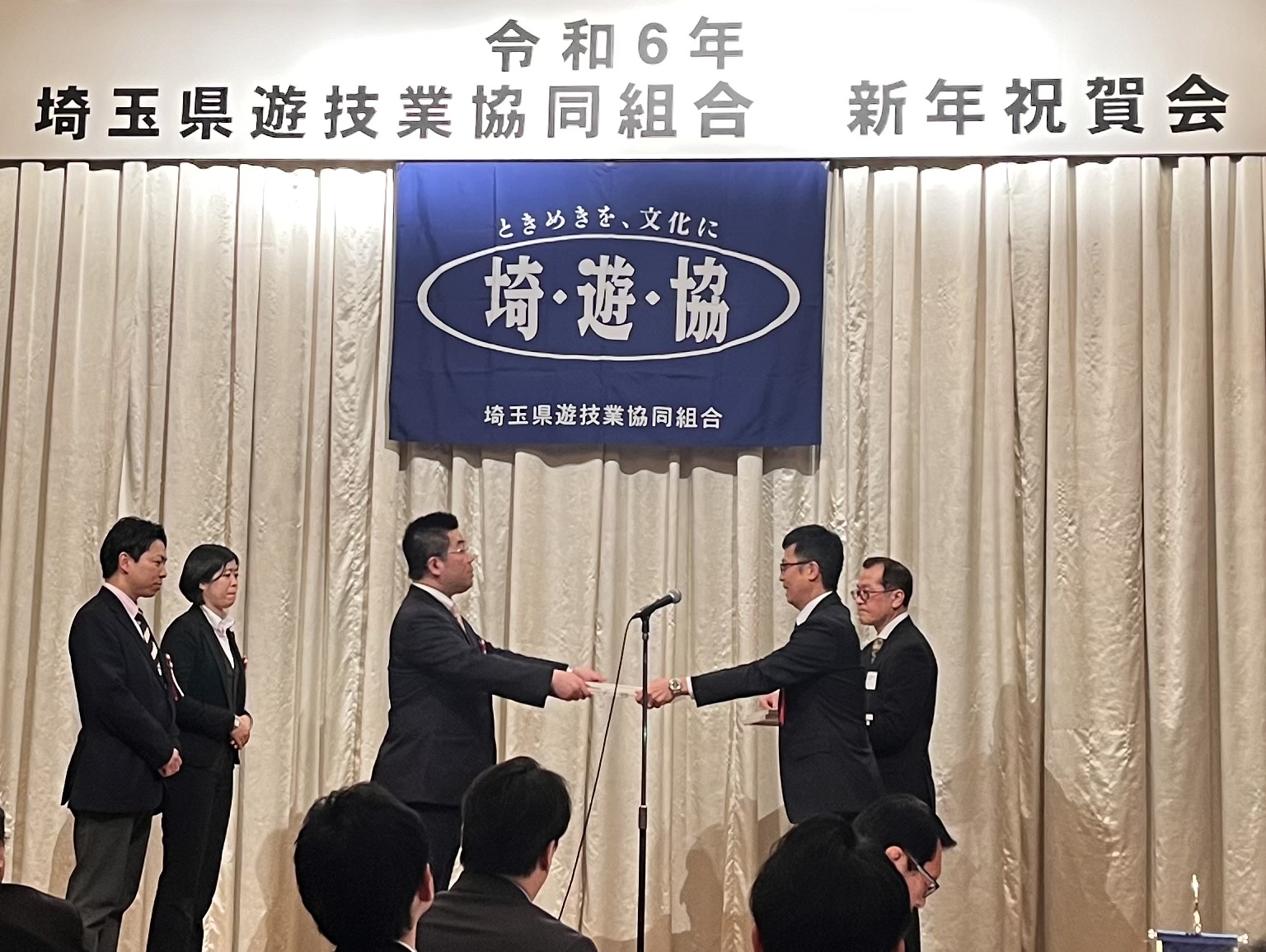 埼玉県遊技業協同組合は1月31日、さいたま市のホテルブリランテ武蔵野で新年祝賀会を開催し、業界関係者ら約150人が出席した。