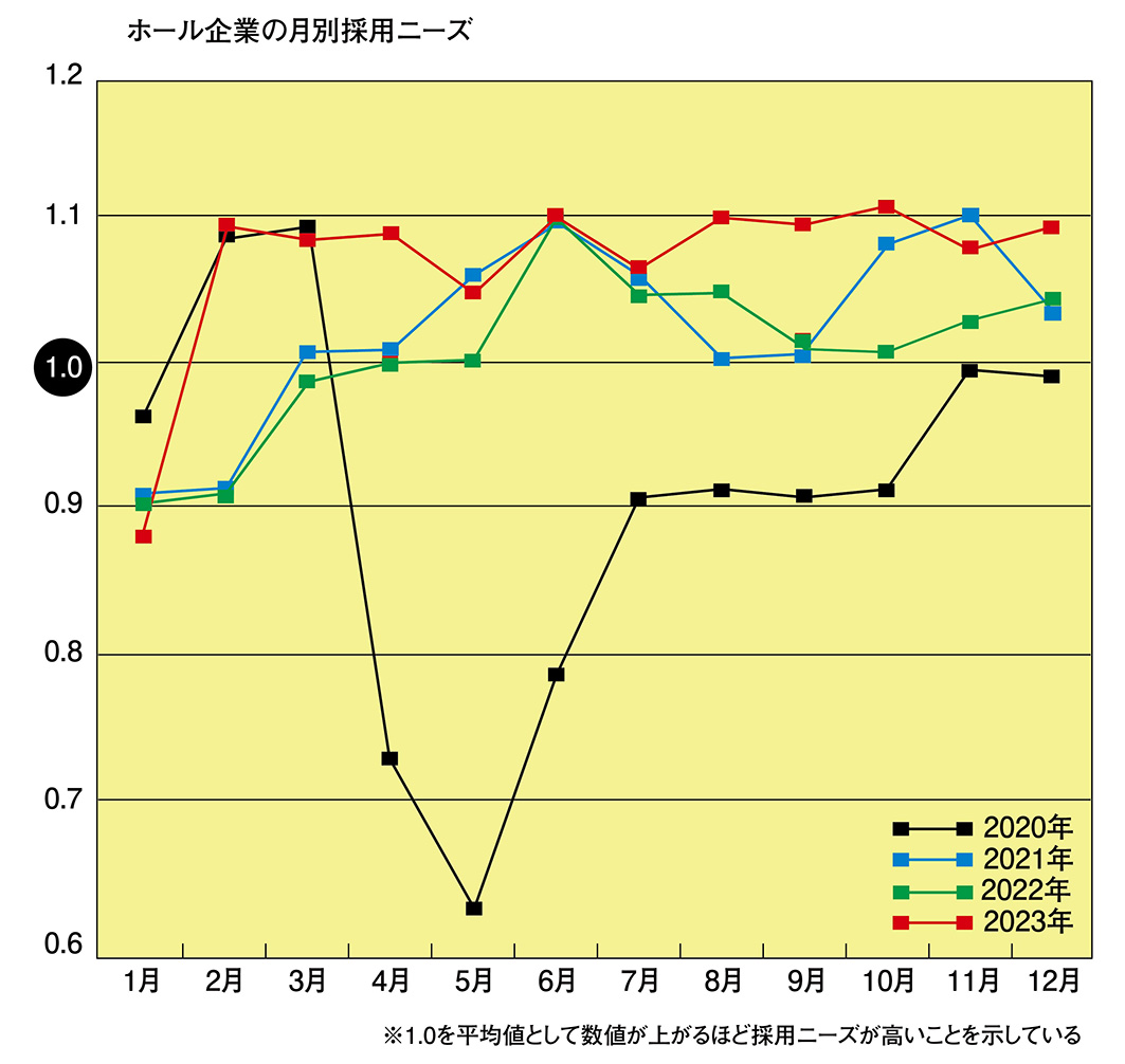 パチンコ業界に特化した人材採用支援を行うパック・エックスが、ホール企業の採用意欲について毎月まとめている「パチンコホール企業の転職市場状況」によると、2023年12月の採用ニーズは前月を上回る1.08ポイントだったことが…