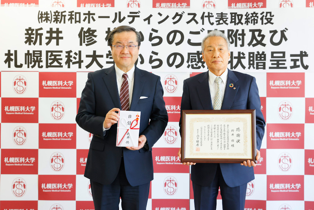 北海道の遊技場経営大手、新和ホールディングスの新井修代表取締役社長は12月4日、個人として札幌医科大学に1億円の寄付を行った。