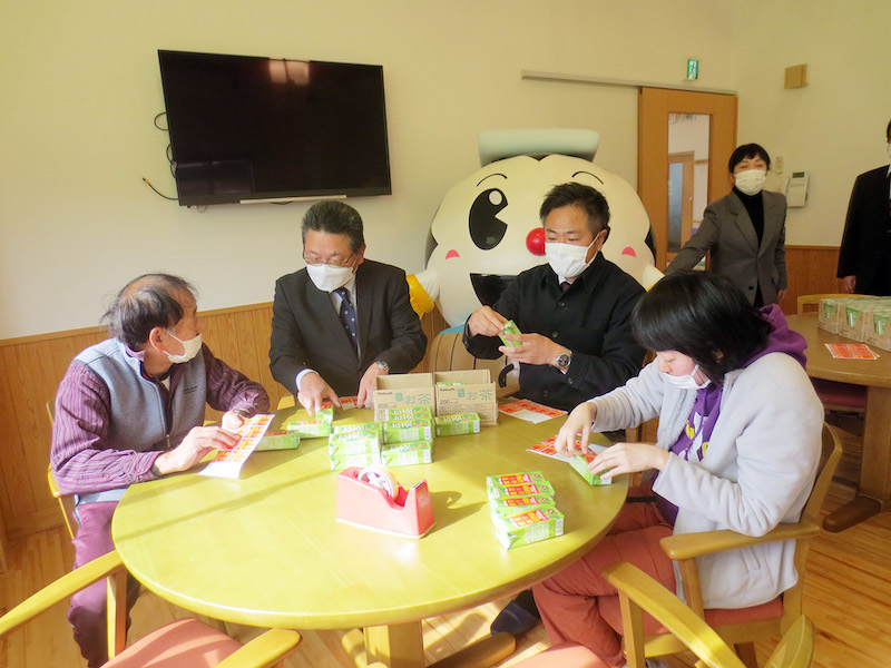 大分県遊協は12月6日、大分県宇佐市の社会福祉法人 清流会 就労支援B型事業所「ワークステーション ドルフィン」で、年賀シール貼付依頼式を実施した。
