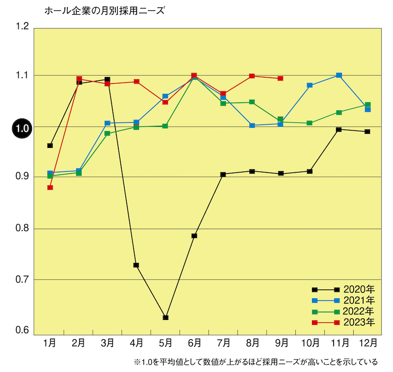 パチンコ業界に特化した人材採用支援を行うパック・エックスが、ホール企業の採用意欲について毎月まとめている「パチンコホール企業の転職市場状況」によると、2023年9月の採用ニーズは前月をやや下回る1.08ポイントだったこと…
