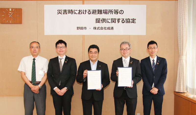 中国地方を中心に関東、九州エリアでホールを展開する成通グループは6月30日、千葉県野田市で運営しているハリウッド野田、ハリウッド七光台の2店が、野田市と「災害時における避難場所等の提供に関する協定」を締結した。