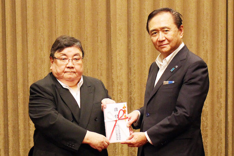 岡山県遊技業協同組合(千原行喜理事長)は、6月15日に開催された同組合の総会および岡山市ぱちんこ業協会の合同祝賀会の冒頭に、青少年育成団体等に寄付金の贈呈を行った。