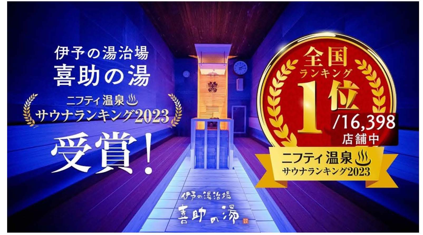 愛媛県のホール企業・キスケグループが運営する「伊予の湯治場 喜助の湯(松山市)」が、2023年3月7日発表の「ニフティ温泉 サウナランキング 2023」で、16,398施設の中から栄誉ある1位を受賞した。また、「しま…