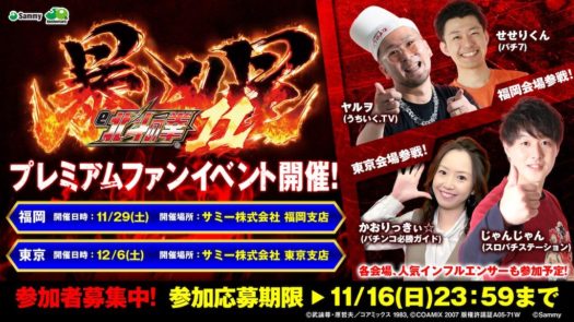 サミーは、2025年12月8日より導入予定のパチンコ新機種「e 北斗の拳11 暴凶星」のプレミアムファンイベントを東京・福岡の2会場で開催する。