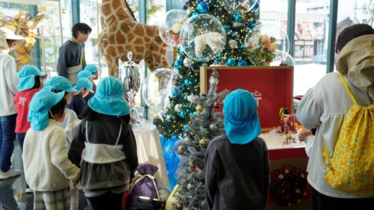 - 善都本社ロビーのウィンターツリーを今年も近隣園児が見学
