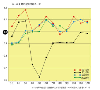 9月のホール企業採用熱、先月を下回るも基準値越えの1.02ポイントで推移